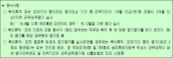 *** 육아휴직 기간 중 근무기간이 2개월(연1회 근평) 이상이면 근무성적평가 실시!!!