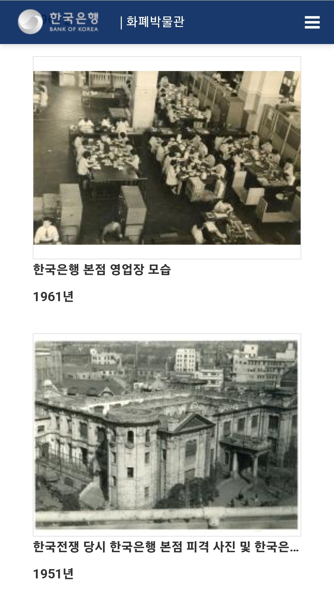 광복 이후 1950년 대한민국의 중앙은행으로 창립되며 어렵게 한국은행의 본점이 되자마자 한국전쟁 때 폭격 등으로 1951년 내부가 거의 파괴되었다고 합니다.