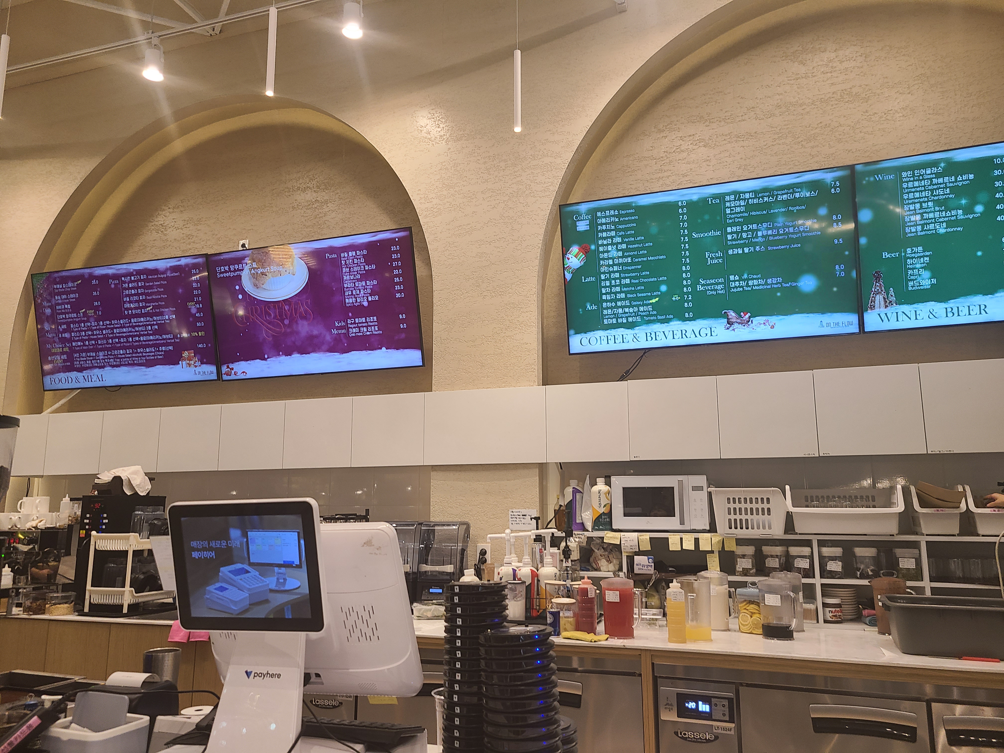 기본적인 식사도 가능하고(파스타, 피자) 빵도 파는 대형 카페였어요.